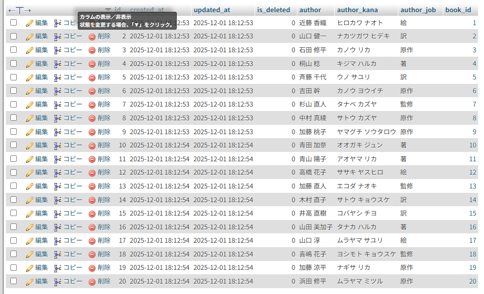 7. 書籍、著者、タグテーブルのダミーデータを作成