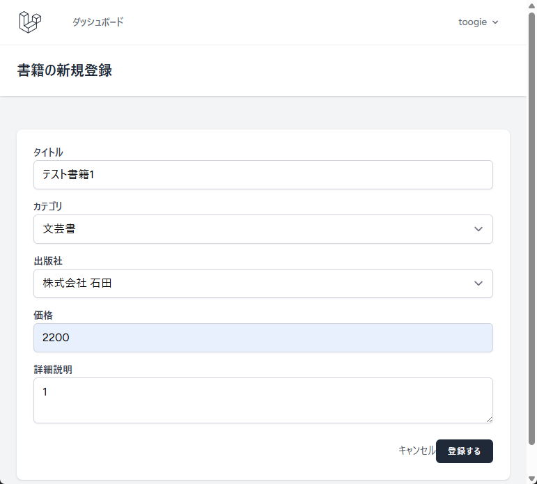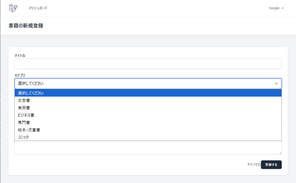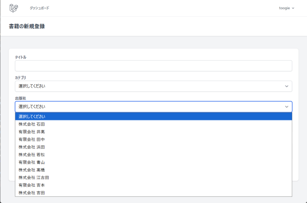 カテゴリと出版社はプルダウンで選択できるようになっています。