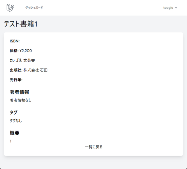 最低限の登録フォームのみです。(ISBNコード、発行年、タグなどは未実装)